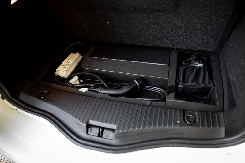 Spremnik goriva stoji s jedne strane auta, dok je s druge poklopac iza kojeg se krije spoj za punjenje baterija. Kapacitet je 9.8 kWh.