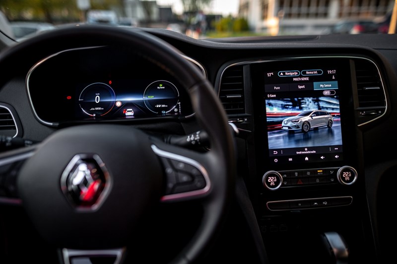 U praksi se Megane vozi kao klasičan hibrid. Izaberete MySense program rada i to je to, dalje sve odrađuje mozak automobila. Doživljaj je poput onog u Priusu, ali uz osjetno veći udio vožnje na struju. Također, auto će voziti na struju i ako naglo stisnete gas. Tu su i Pure električni mod rada (do 135 km/h), te Sport s maksimalnim korištenjem svih dostupnih sustava. Konačno, E-Save mod omogućava štednju električne energije u baterijama dok vozite nezahtjevnim načinom poput otvorene ceste.