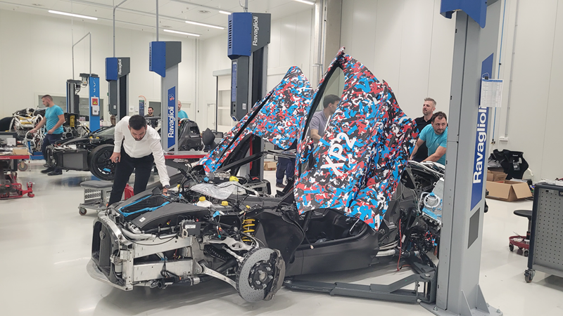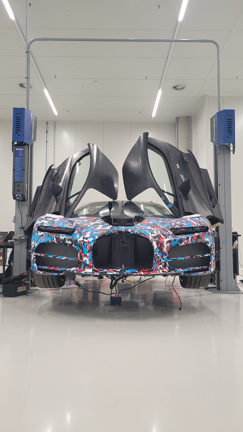 Kamuflirani Tourbillon vozio je stazom Nardo u Italiji, gdje se moglo svjedočiti uvjerljivom ubrzanju i kad je pogonjen samo benzinskim motorom. Nimalo čudno s obzirom na to da 8.3-litarski monstrum samostalno osigurava do 1000 KS, a vrti se sve do 9000 o/min.