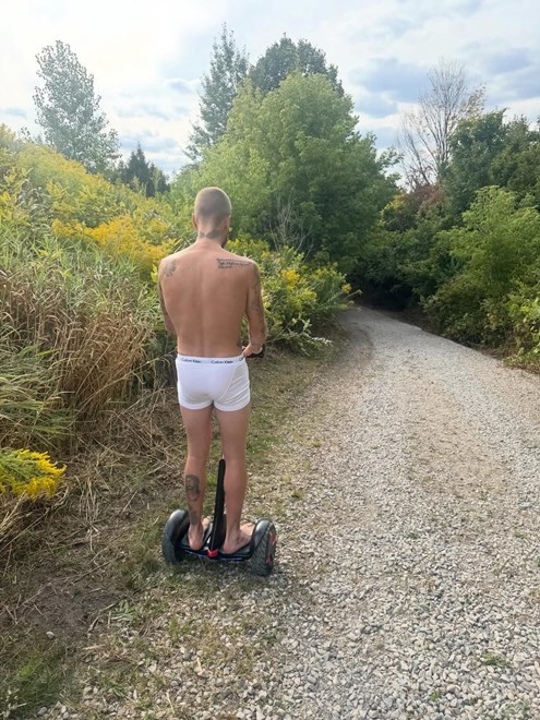 ČINI se da se Justin Bieber osjeća i više nego ugodno u vlastitoj koži. Popularni 31-godišnji pjevač u srijedu je na svom Instagramu podijelio seriju fotografija i videa na kojima se vozi na Segwayu, odjeven samo u donje rublje. Objavio je fotke na kojima se vozi po makadamu usred bijela dana, samo u gaćama.