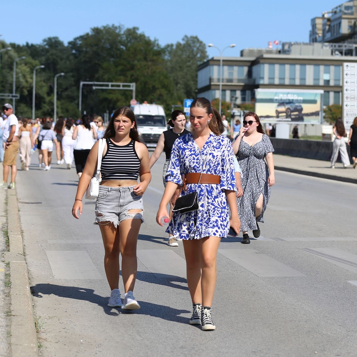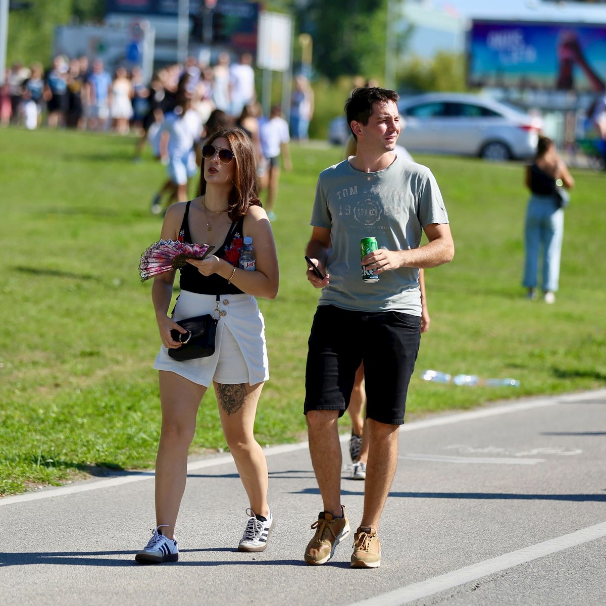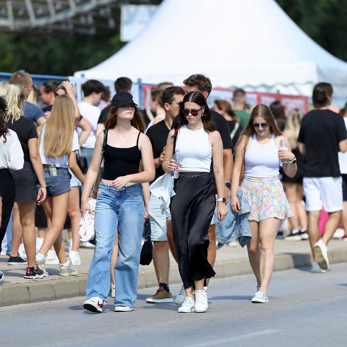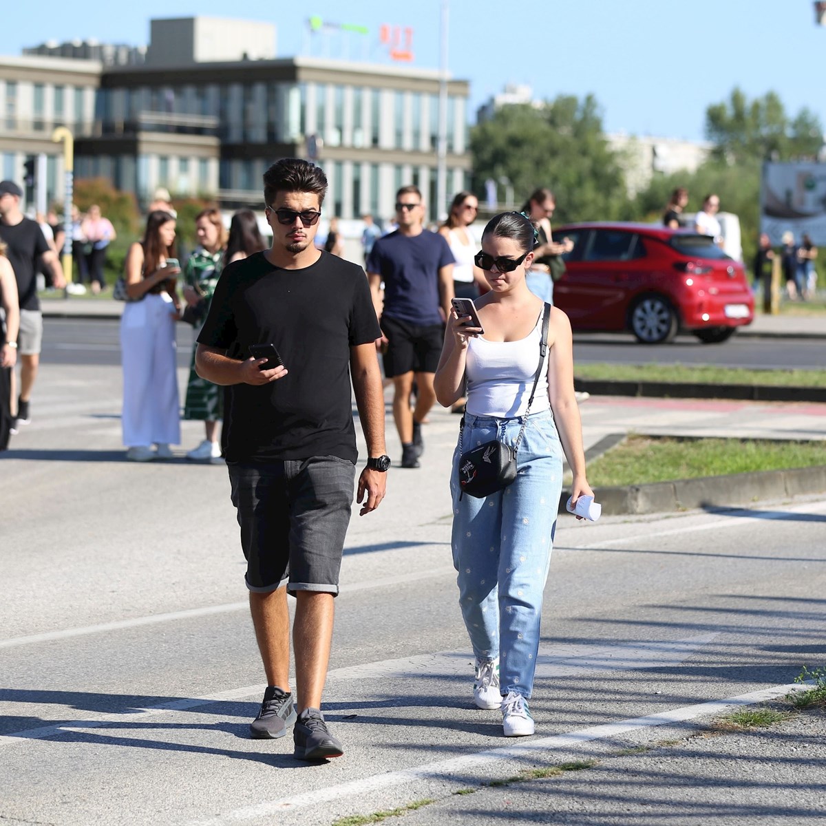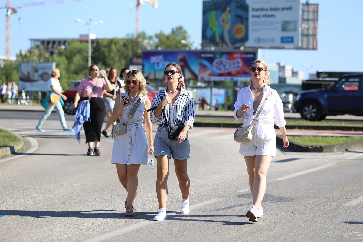 Kratke hlačice i topići, lagane suknje i lepršave ljetne haljine najčešće su kombinacije koje su obožavateljice odabrale za vruće ljetno popodne i toplu zagrebačku večer u kojoj će uživati u glazbenom megaspektaklu, a snimili smo i jednu obožavateljicu koja je na koncert došla s - nogom u gipsu.