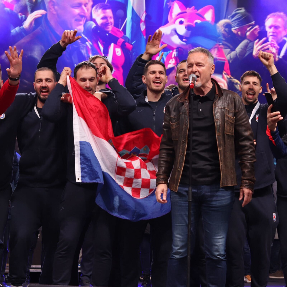 Marko Perković Thompson nastupio je na dočeku po željama rukometaša. Kad je htio napustiti pozornicu, navijači i rukometaši vikali su "hoćemo još", nakon čega je Thompson po drugi put zapjevao neslužbenu himnu rukometaša - Ako ne znaš šta je bilo.