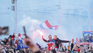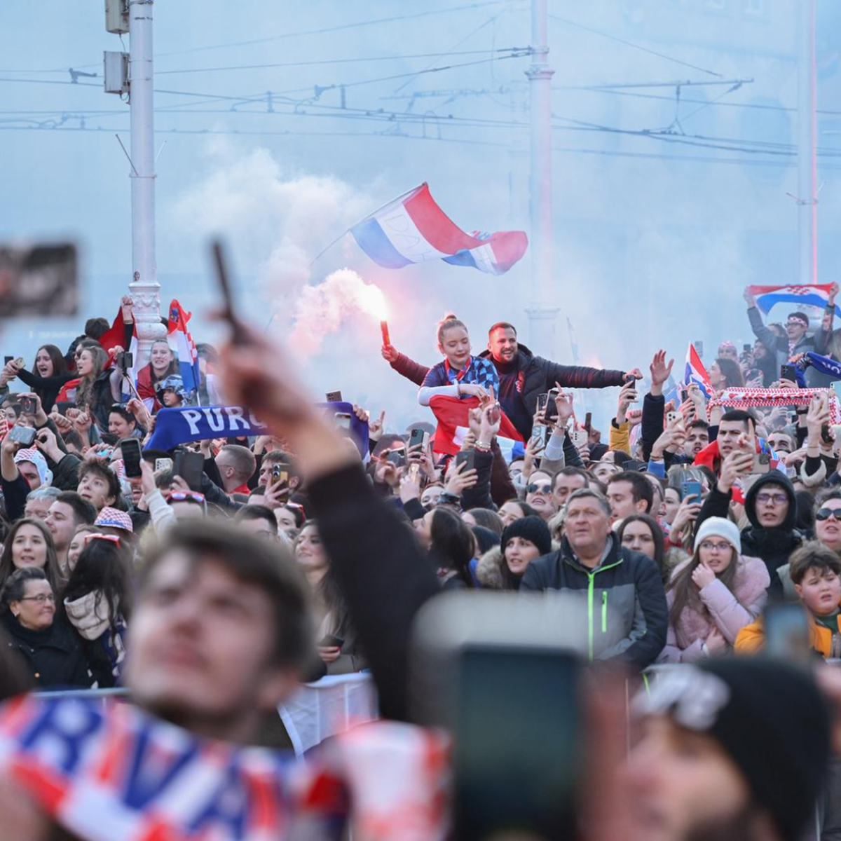 Mnogi navijači sa sobom su na Trg ponijeli hrvatske zastave, koje su se tijekom cijelog popodneva vijorile.