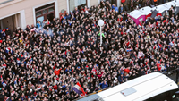 Velika euforija nastala je kad je autobus s rukometašima stigao do Trga.