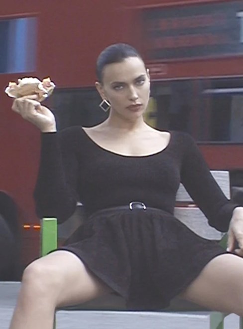 Na snimkama i fotografijama iz kampanje, Irina šeće ulicama Londona i jede različitu hranu, uključujući sendviče, ramen iz čaše, jagode te pije smoothie.