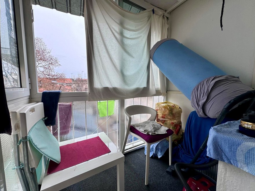 Stan se sastoji od ulaznog prostora s kuhinjom, jedne sobe koja funkcionira kao dnevni boravak i spavaća soba, kupaonice s WC-om i krovnim prozorom te od zatvorenog balkona s PVC stolarijom.