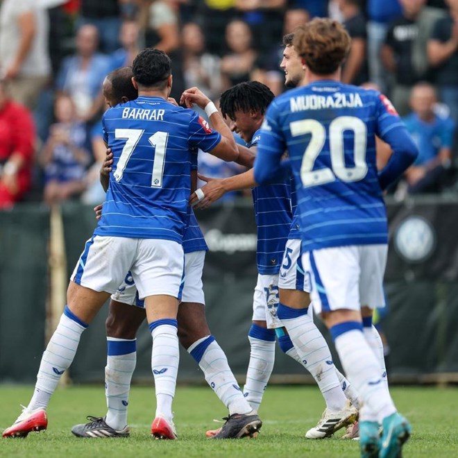 U 24. minuti prvi gol na utakmici zabio je Theophile, tako što je neometano glavom nakon kornera pospremio loptu u mrežu. Do kraja prvog poluvremena za Plave je zabio još i Kulenović. U 40. minuti Plavi su ponovno stvorili višak na drugoj stativi, a precizan ubačaj Luke Stojkovića Kulenović je pospremio glavom.