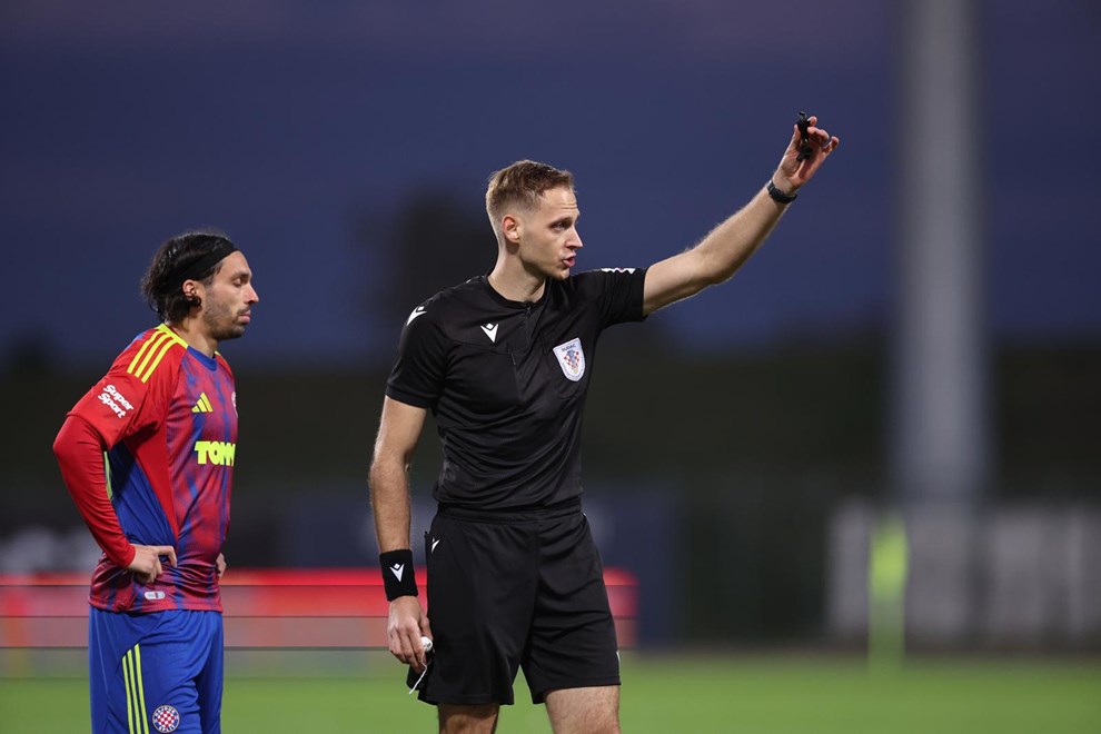 Bit će jedanaesterac za Hajduk! Pozo je neoprezno s leđa zakačio Krovinovića, koji je utrčao u šesnaesterac i tražio loptu. Pavlešić je odmah pokazao na bijelu točku i dao žuti karton Ikeru Pozi.