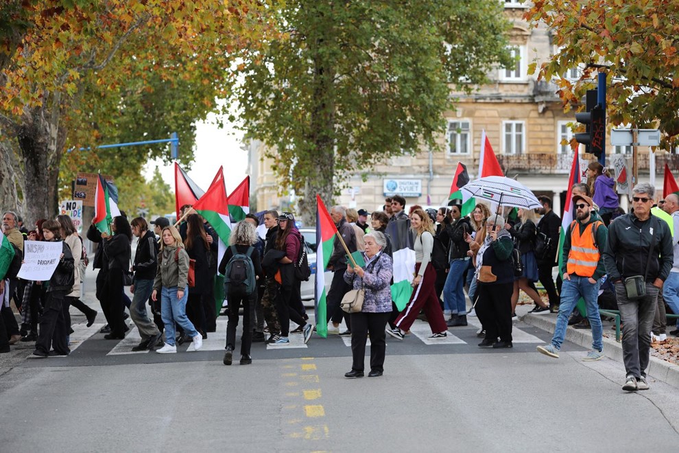 Maršom od Trga 128. brigade do Konta pod nazivom "Od Rijeke do mora - za slobodnu Palestinu" prosvjednici su, uz brojne palestinske zastave i transparente, pokazali solidarnost s palestinskim narodom u Gazi i na okupiranoj Zapadnoj obali te poručili kako svaki narod ima pravo na samoodređenje i na život slobodan od okupacije.