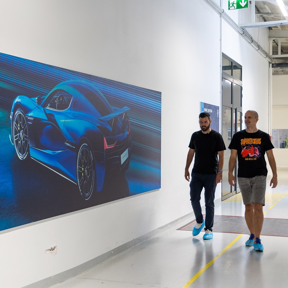 U jednom od njih - Neveri, koja vrijedi 2.5 milijuna eura - vozio nas je od tvornice do tvornice, od one u Jankomiru, u preuređenoj bivšoj zgradi Pevexa, preko Svete Nedelje, gdje se radi razvoj Nevera i Bugattija i odakle se Rimčeva priča vinula prema onome što je danas, te do novog, golemog kampusa u Kerestincu u koji useljenje još uvijek traje.
