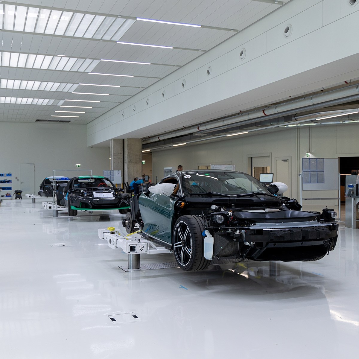 Zadnji dio proizvodnje auta je u pet faza. Tu je i svjetlosni tunel u kojemu se provjerava ima li auto imperfekcije, je li negdje izgreban... Rimac objašnjava da, prije nego što ode kupcu, i on osobno s menadžmentom firme dolazi provjeriti svaki auto i postoji li greška zbog koje auto ne može van. Auti u ovim halama prolaze i test kiše, simulaciju ceste...