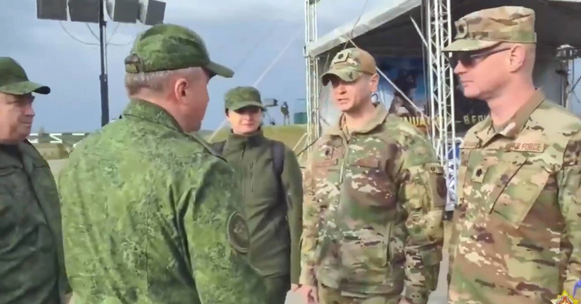 Bjeloruski ministar obrane Viktor Hrenikov osobno je dočekao dva američka dužnosnika, koji su se rukovali s njim i obraćajući se na ruskom zahvalili na pozivu. Prema Reutersu, jedan od njih je potpukovnik američkog ratnog zrakoplovstva Bryan Shoupe.