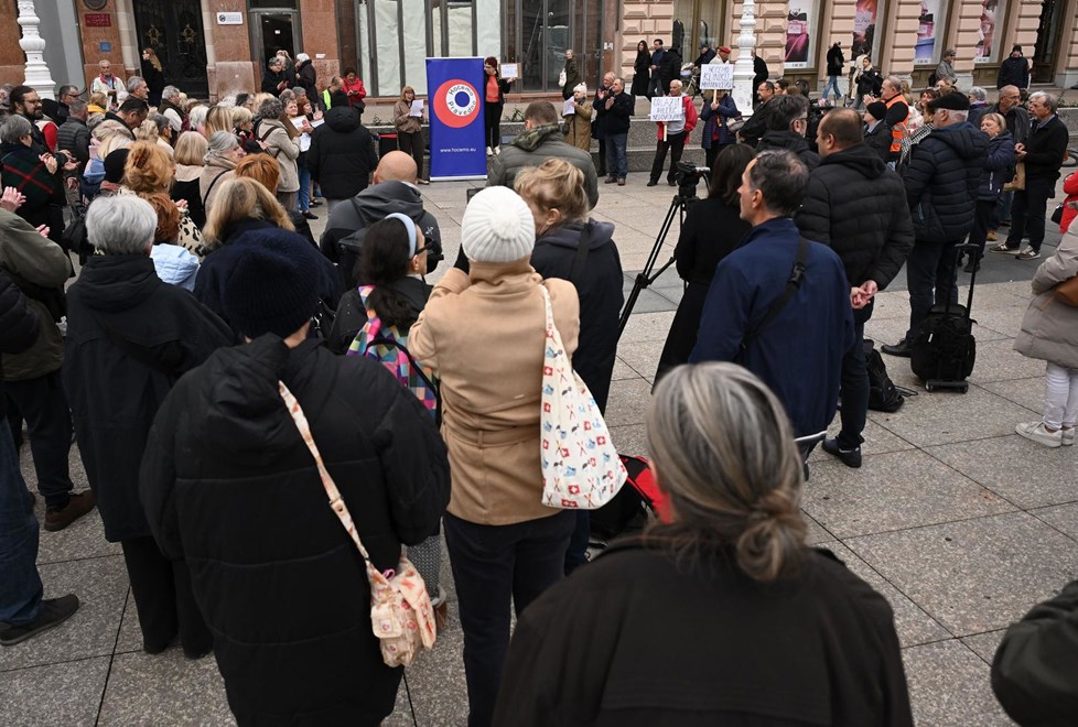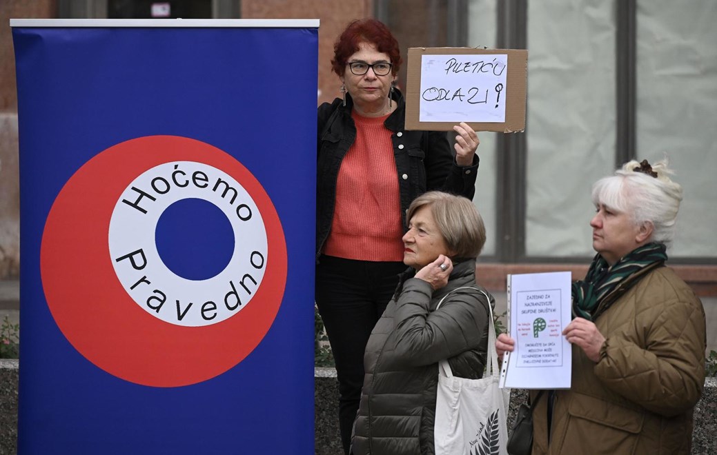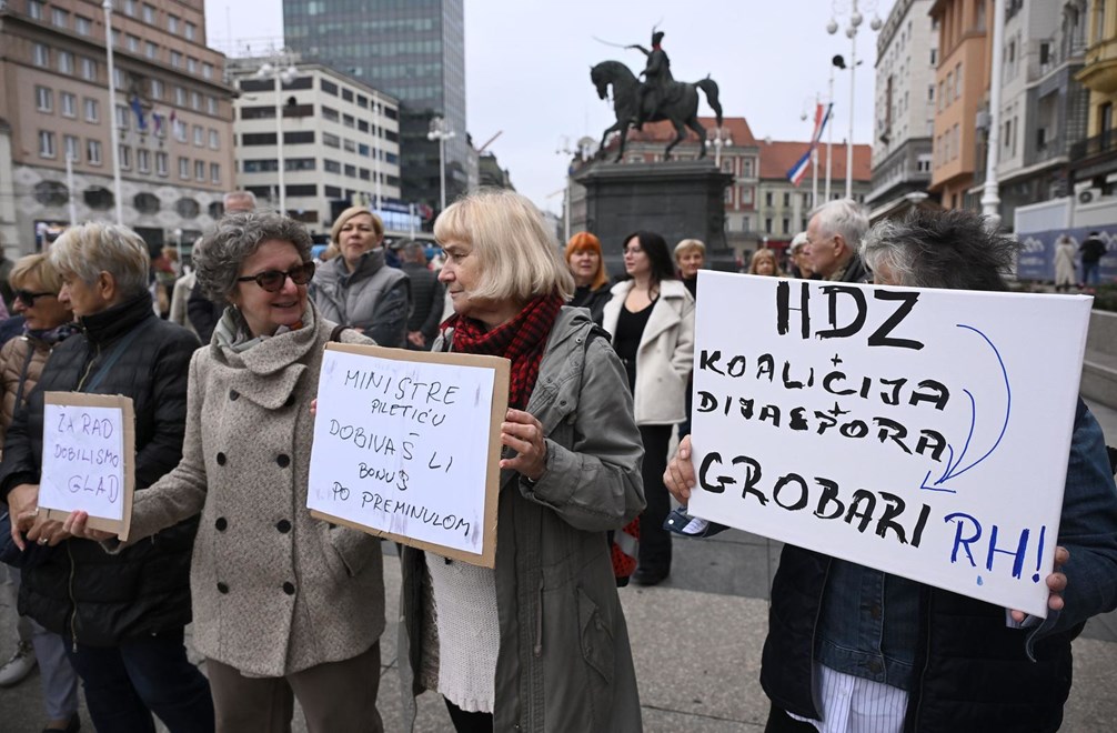U ORGANIZACIJI stranke "Hoćemo pravedno" umirovljenici su na prosvjedu na Trgu bana Josipa Jelačića u Zagrebu iznijeli svoje zahtjeve, među kojima su povećanje mirovine, pravovremena isplata inkluzivnog dodatka, ali i ostavka ministra rada, mirovinskog sustava, obitelji i socijalne politike Marina Piletića, izvještava Dnevnik.hr.