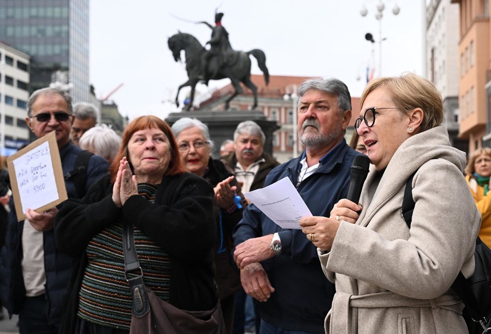 Umirovljenici prosvjedovali na Trgu. "S ovom prosječnom mirovinom ne možemo živjeti"