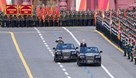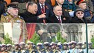 Vladimir Putin promatra paradu iz lože, gdje sjedi pokraj Xi Jinpinga dok vojnici marširaju kroz Crveni trg u Moskvi.
