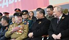 Ruski predsjednik Vladimir Putin spustio se iz svečane lože i pozdravlja zapovjednike ruskih oružanih snaga.