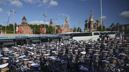 Kolone vojne opreme - tenkovi, samohodne topničke jedinice, višecijevni raketni sustavi i druga vozila - premještene su u središte Moskve radi sudjelovanja na Paradi pobjede.
