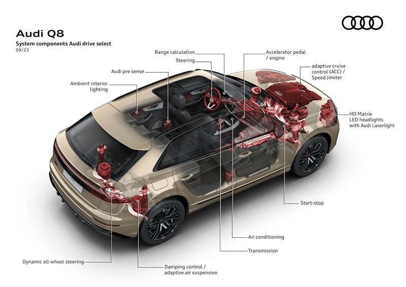 Paleta dostupnih motora kreće od 231 KS (i 500 Nm) snažnog dizelaša, potom i 50 TDI quattro izvedbe s 3.0 dizelašem i 286 KS (i 600 Nm). Istu zapreminu ima i benzinac, 55 TFSI s 340 KS i 500 Nm, dok je na mjestu top izvedbe SQ8 s 4.0 V8 motorom od 507 K Si 770 Nm. Potonji do 100 km/h stiže za 4.1 sekundu, dok su ostale izvedbe sporije do 3 sekunde.