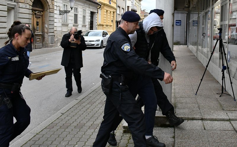 Na ispitivanje su ga dovela dvojica interventnih policajaca, a na rukama je imao lisice. U prostorije Županijskog državnog odvjetništva ušao je s kapuljačom na glavi.