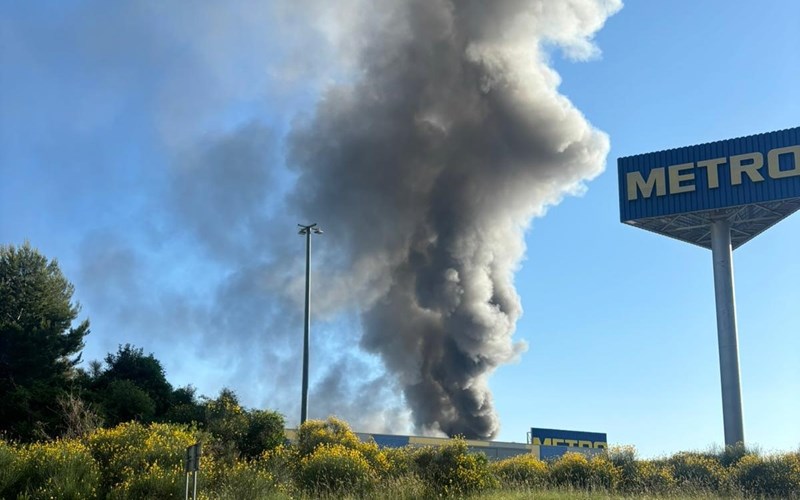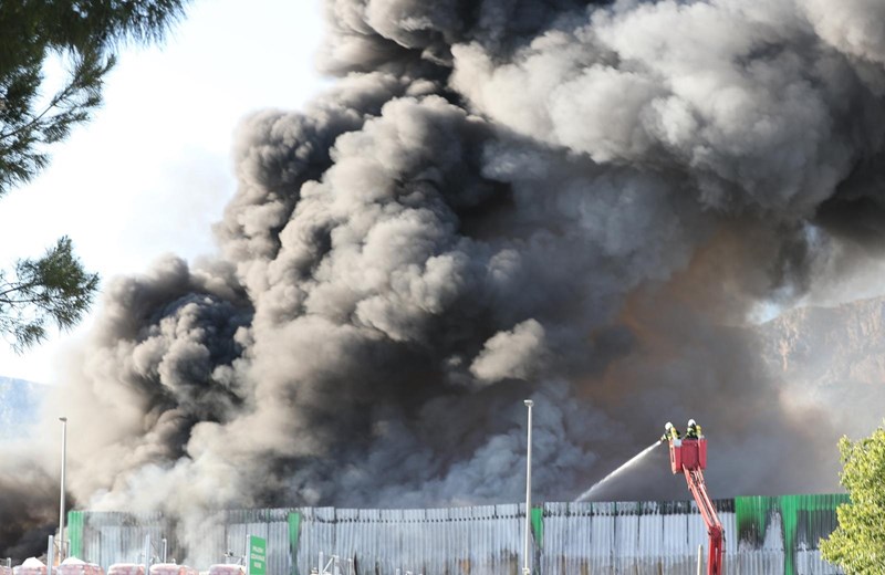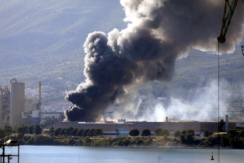 Požar je izbio u ponedjeljak, 19. svibnja, nešto prije 18 sati u skladištu Pevexa u Kaštel Sućurcu, na adresi Put Juke.