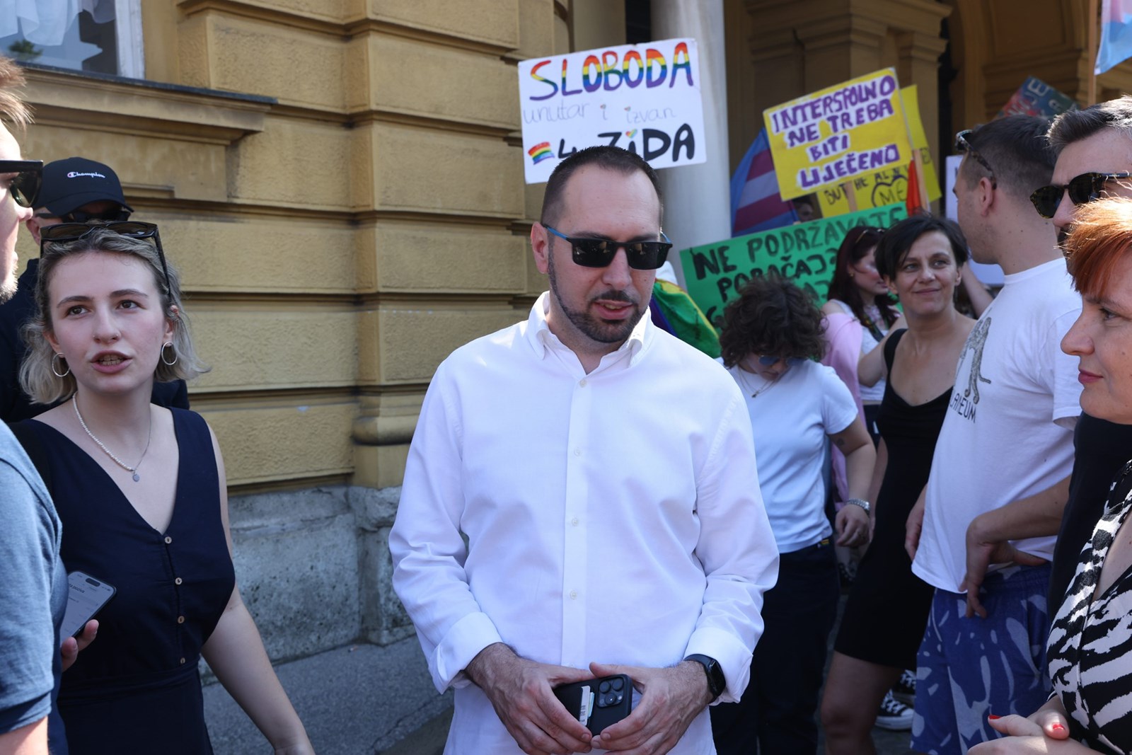 Među okupljenima ispred HNK bio je i gradonačelnik Zagreba Tomislav Tomašević koji je podsjetio da se Pride u Zagrebu održava još od 2002. godine.