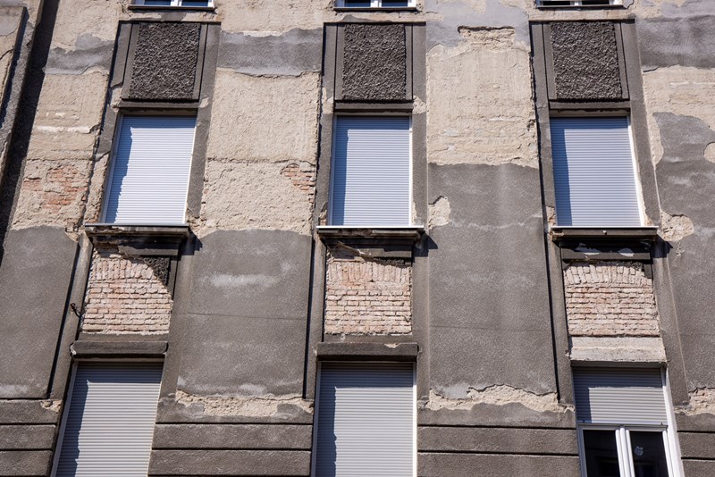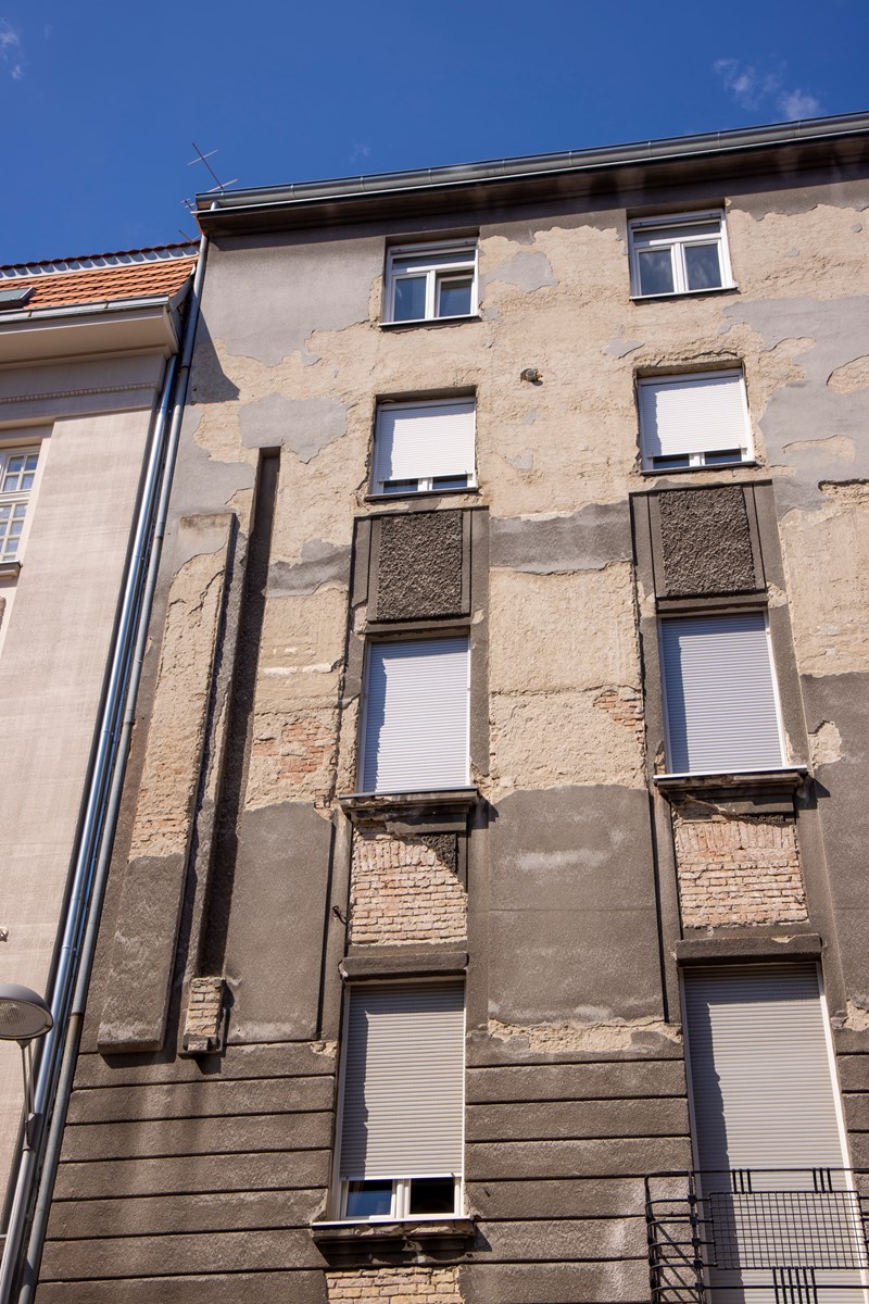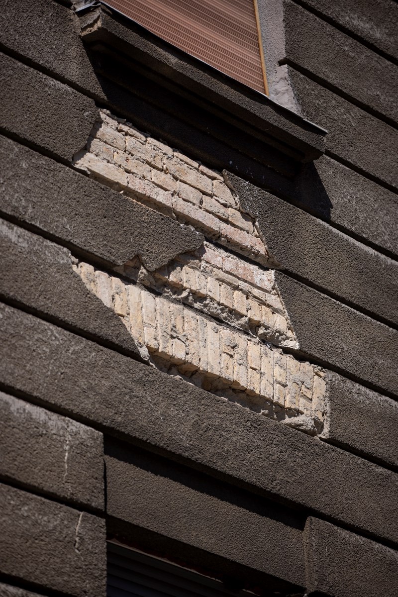 Na gotovo cijeloj zgradu su vidljiva oštećenja žbuke. Nije poznato je li sva oguljena žbuka otpala danas ujutro ili su neka oštećenja nastala i ranije.