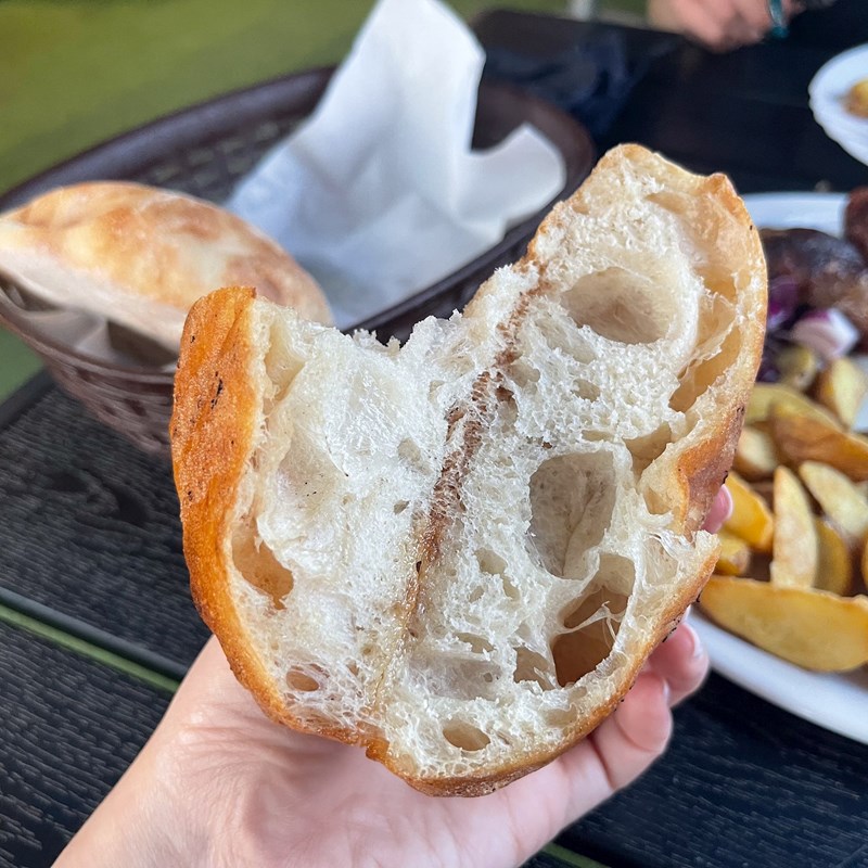 Ćevapi su punjeni gauda sirom i mozzarellom. U jednoj porciji dobijete dva ogromna ćevapa te za prilog pekarski krumpir, ajvar, crveni luk i dvije lepinje. Tekstura ćevapa je blago gumenasta, a sira ima više nego mesa. Sve je jako fino, nije nimalo masno. Oduševio nas je i okus lepinja koje su pečene na masti od mesa. Milina!