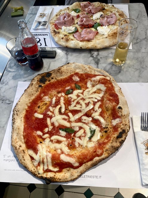 Dvije pizze, malo pivo i sok platili smo 34 eura. Što je znatno više nego u većini naših pizzerija. Još smo više potrošili u drugoj tršćanskoj pizzeriji dan poslije, ali o tome ću pisati više u sljedećoj kolumni. Cijena definitivno prati kvalitetu pizze, usluge i cjelokupnog doživljaja i adekvatna je za ono dobiveno, ali je ipak viša od već spomenutih pet ili šest eura.