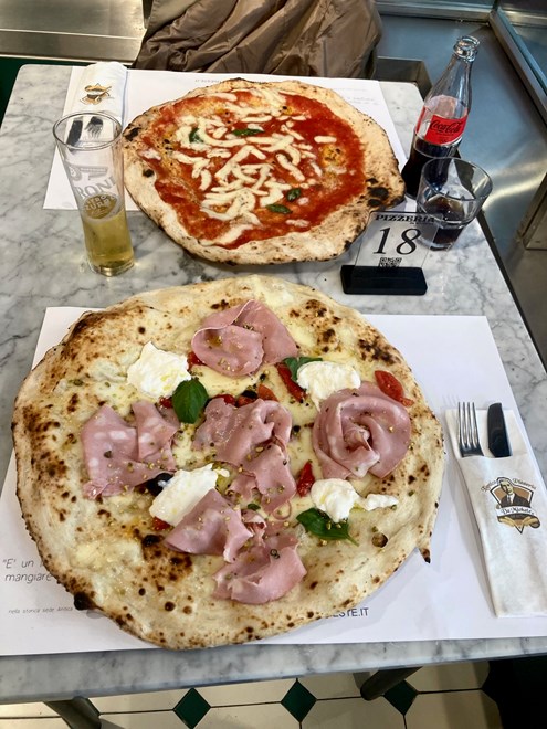 Izabrao sam dvije pizzerije, obje vrlo popularne i s vrlo visokim ocjenama u recenzijama. Obje u samom centru grada. Prvi smo se dan odlučili za L'Antica Pizzeria da Michele, jednu od najpoznatijih svjetskih pizzerija. Prije tri smo godine bili u onoj napuljskoj koja je postala poznata nakon prikazivanja filma Eat, Pray, Love u kojem Julia Roberts sjedi u pizzeriji i izgovara legendarnu rečenicu: “Ovo je Napulj.Tvoja je moralna obaveza jesti i uživati u pizzi Margheriti“.