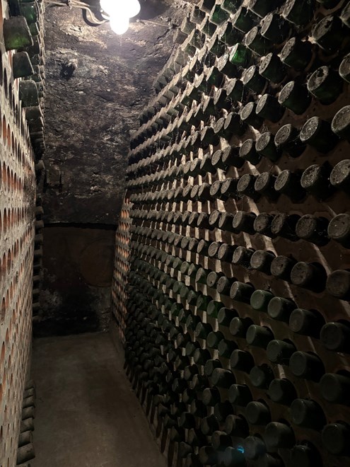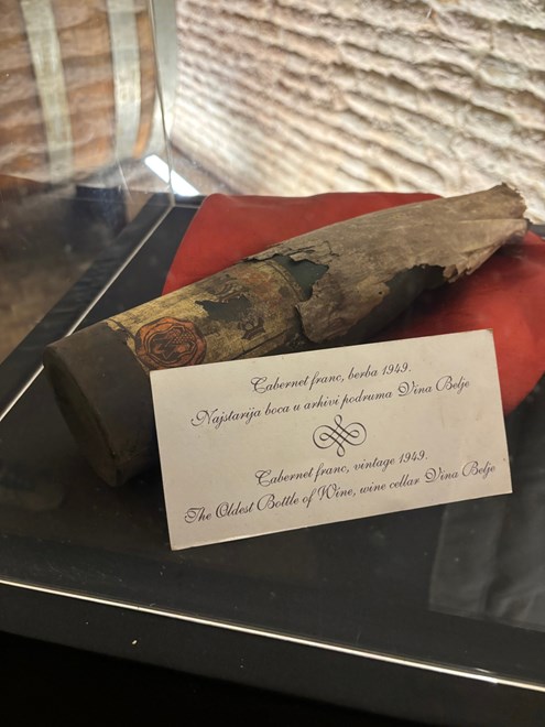 Domaćini su nam omogućili pristup arhivu podruma, gdje smo mogli vidjeti organizirane redove butelja i bačava te dobiti uvid u način čuvanja vina kroz desetljeća.U arhivu se čuva više od 20 000 boca, među kojima je i najstarija, cabernet franc iz 1949. godine. Najveće bačve u podrumu imaju 10 000 litara, a postoje i manje od 2 000 litara, koje služe za kontrolu fermentacije i odležavanje.