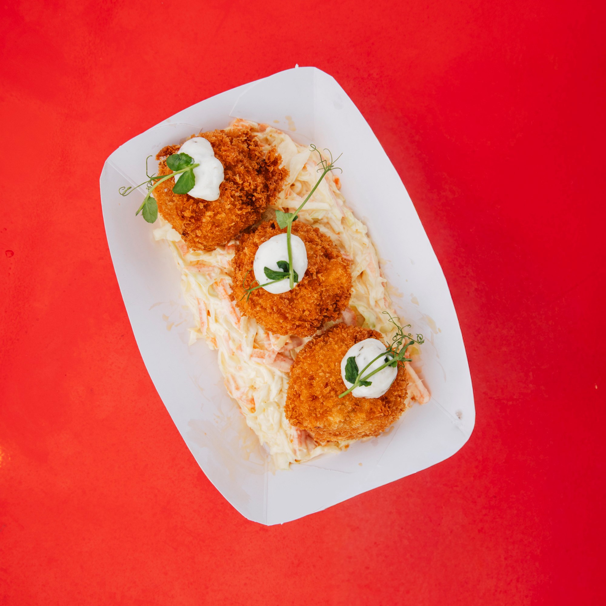 Mi smo probali hit jelo. Arancini su hrskavi izvana, unutra je pulled piletina (trgana piletina) s rizi-bizijem, sve zajedno odlično balansirano okusima i teksturom. Jako ukusno. Cijena je 8.50 eura.