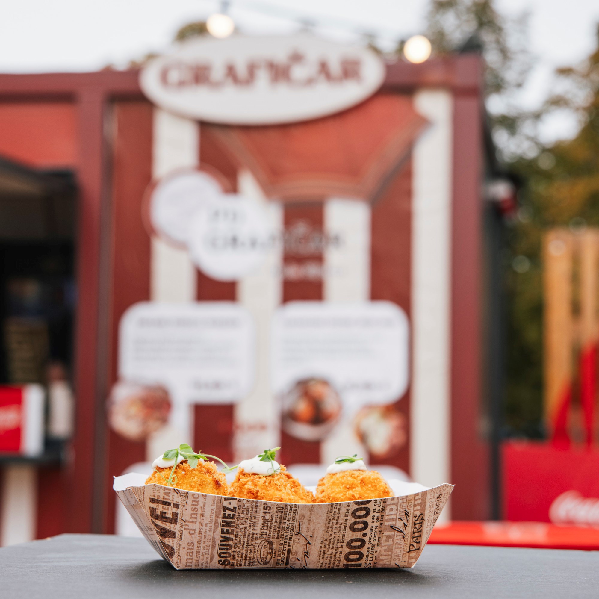 Sljemenski Grafičar po prvi put je na festivalu, a postao je hit upravo zbog arancina s rizi-bizijem i picekom. Osim toga, Grafičar nudi i pulled turkey burger te dvije verzije štrudli - slanu s buncekom i slatku s jabukom i vanilijom.