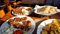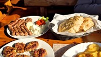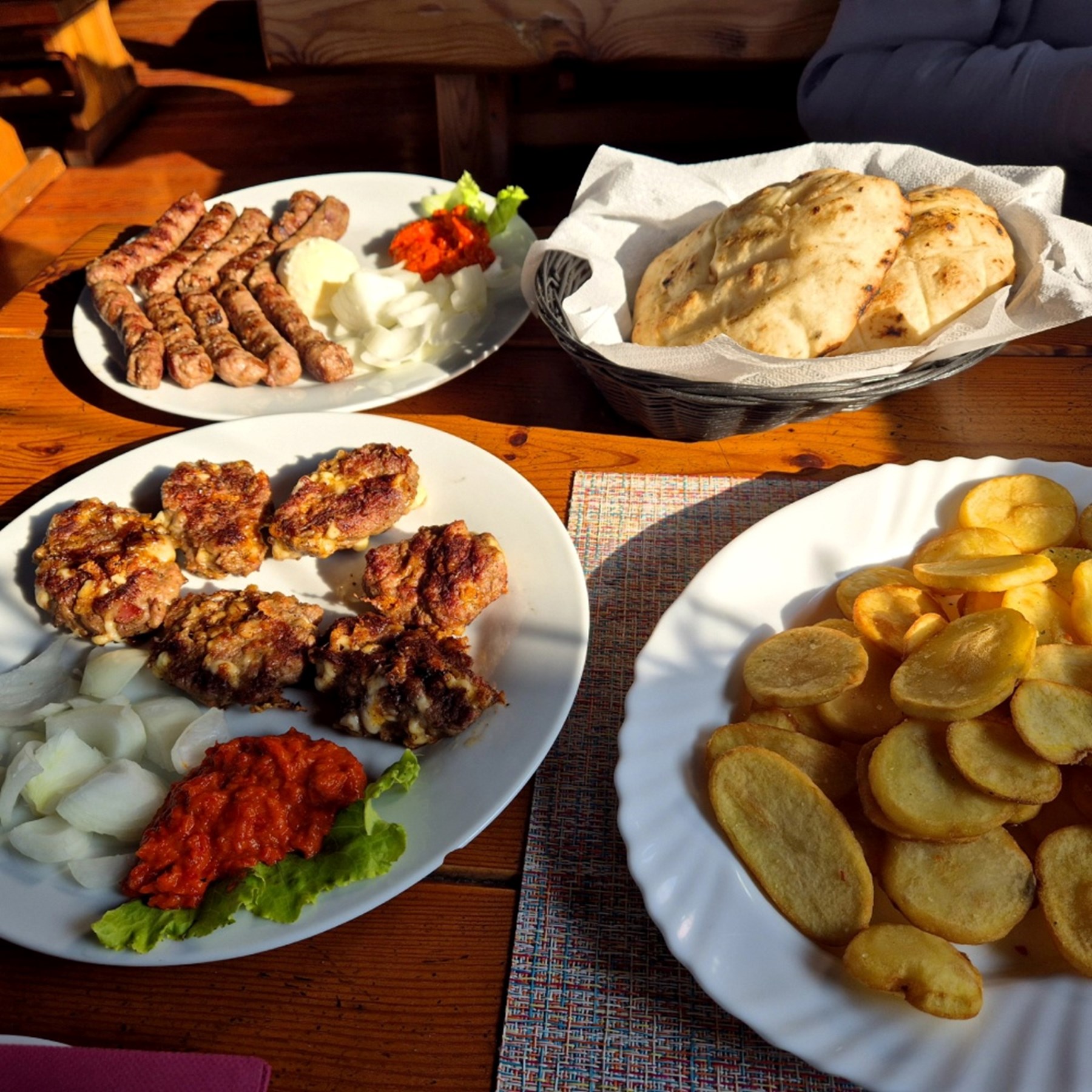 Mi smo uzeli ćevape s kajmakom, uz koje se dobije i izdašna količina luka, ajvar i kajmak (onaj pravi, mliječno-punomasni, ne industrijski), ali i jedna lepinja solidne veličine. Ćevapi su mesnati, bez previše soli, taman masni, zapečeni izvana, a sočni iznutra - baš ono što uvijek očekujete, ali rijetko dobijete.