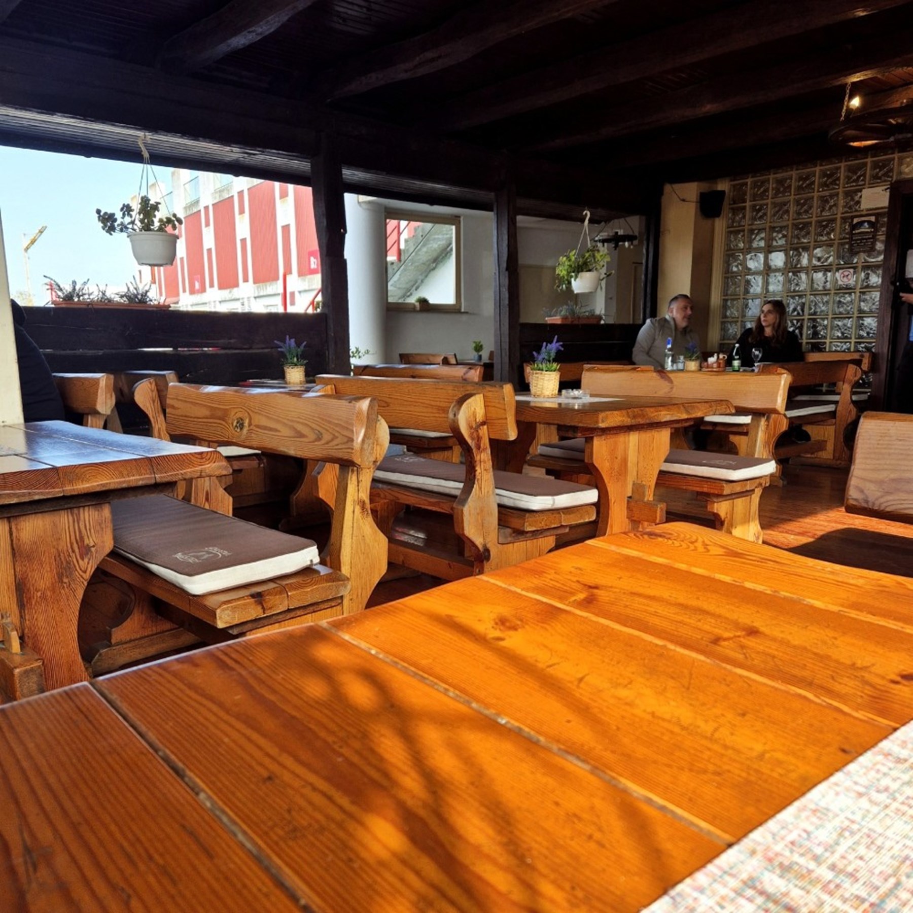 Nakon što smo se parkirali odmah ispred stadiona, dočekalo nas je nimalo pretenciozno mjesto s rustikalnom terasom, na kojoj smo odmah zauzeli jedan stol, kao i simpatičan konobar koji je brzo donio jelovnike.