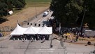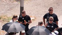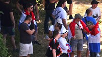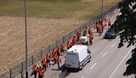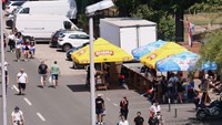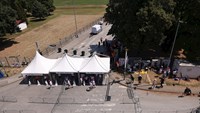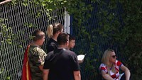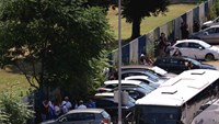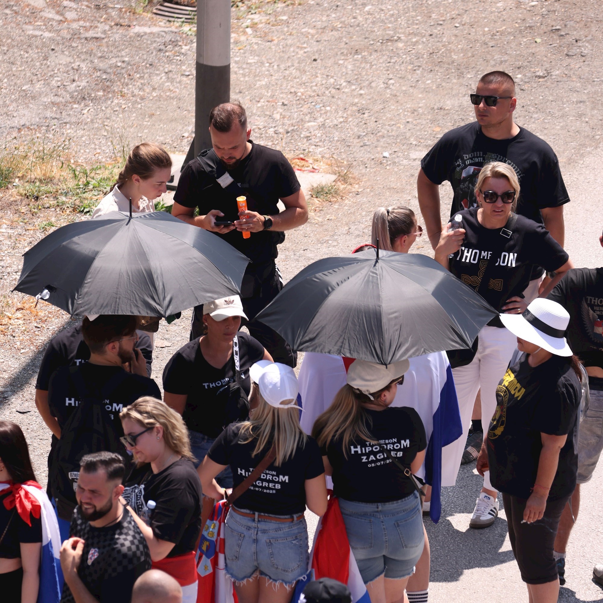 POSJETITELJI pristižu na VIP ulaze kod Hipodroma. Zapaljena je i baklja kod ulaza, a pristižu i autobusi na tu stranu Hipodroma. Neki su odjeveni u vojne uniforme.