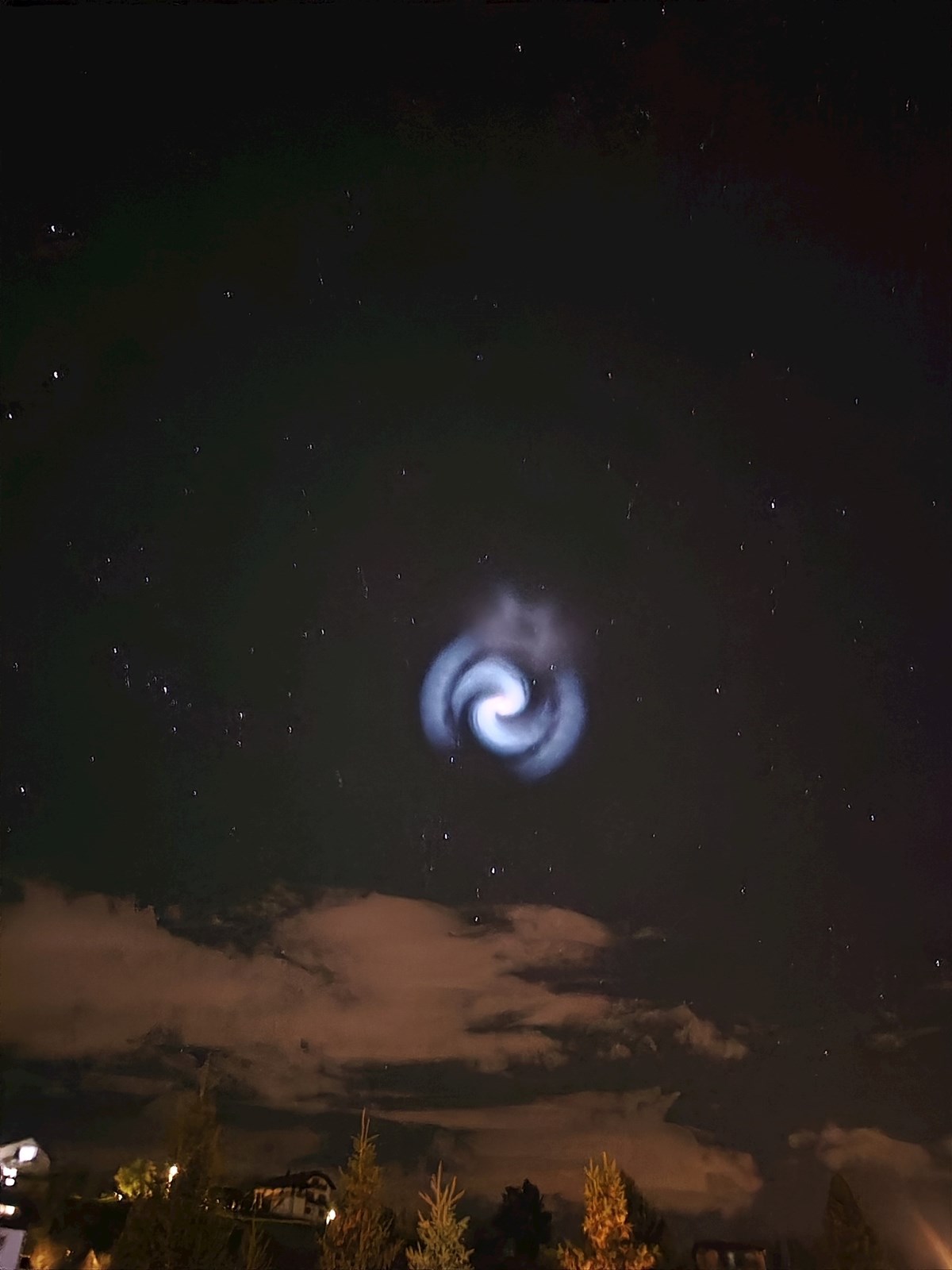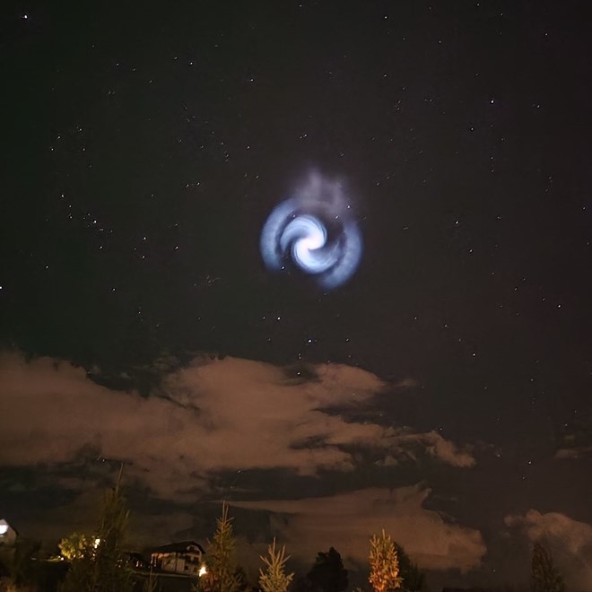 Riječ je o tzv. Space X spirali, što je naziv za neobičan fenomen na nebu koji izgleda kao svijetleći spiralni oblik, a nastaje kao posljedica lansiranja raketa tvrtke SpaceX, najčešće Falcon 9. Ova pojava nije povezana s vanzemaljcima ili nadnaravnim događajima, već ima znanstveno objašnjenje vezano uz fiziku raketnog pogona i atmosferu.
