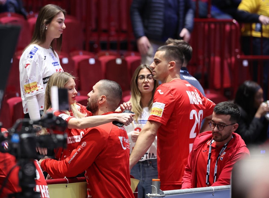 Kao i na dosadašnjim utakmicama, rukometaši su nakon pobjede poletjeli svojima najmilijima u zagrljaj, a pale su i puse. Dominika Kuzmanovića i ovoga je puta bodrila djevojka Kim, Zagrepčanka koja je završila ekonomiju.