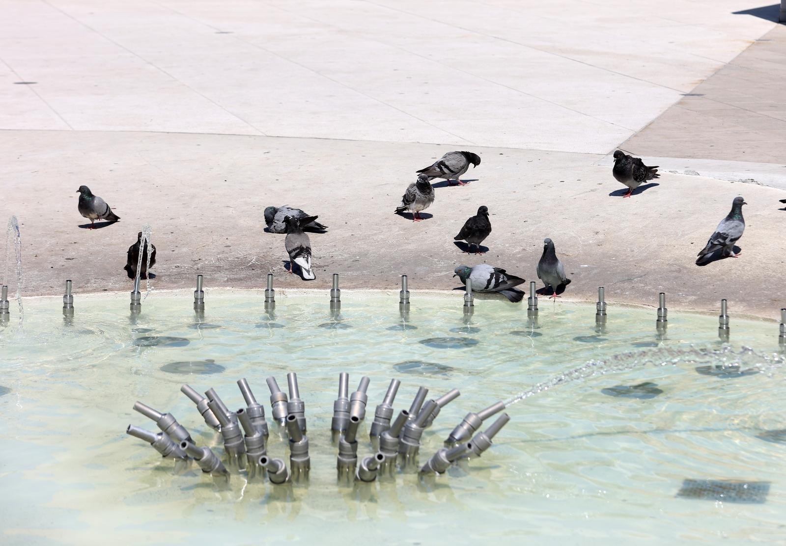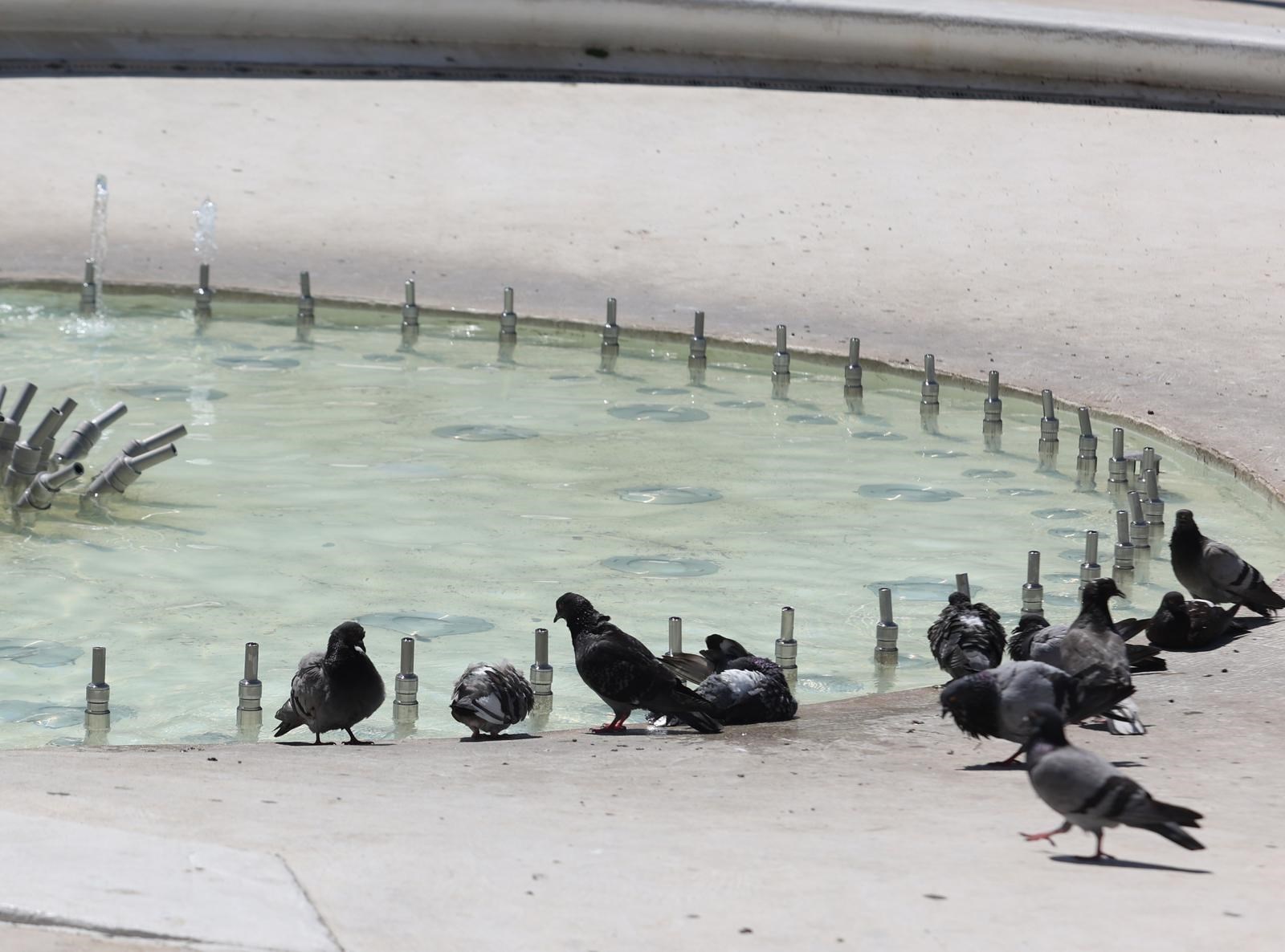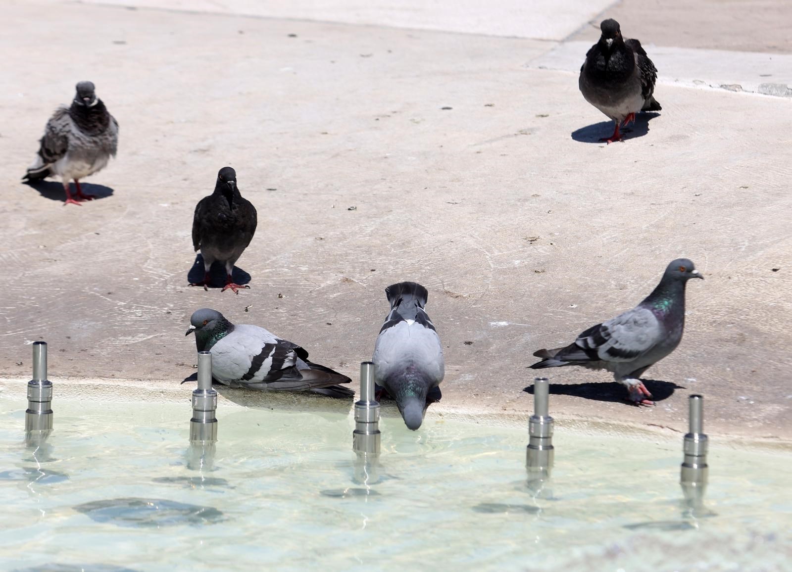 Ljudi traže hlad i piju puno tekućine, a u Šibeniku su ovih dana žedni i - golubovi. Fotografi su snimili simpatičan prizor kod vodenog sata na šibenskoj Poljani gdje se hrpa golubova okupila i pila vodu.