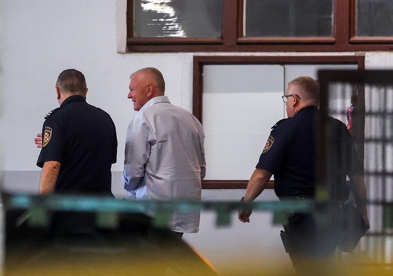 Petrača su na ispitivanje pravosudni policajci doveli s lisicama na rukama.