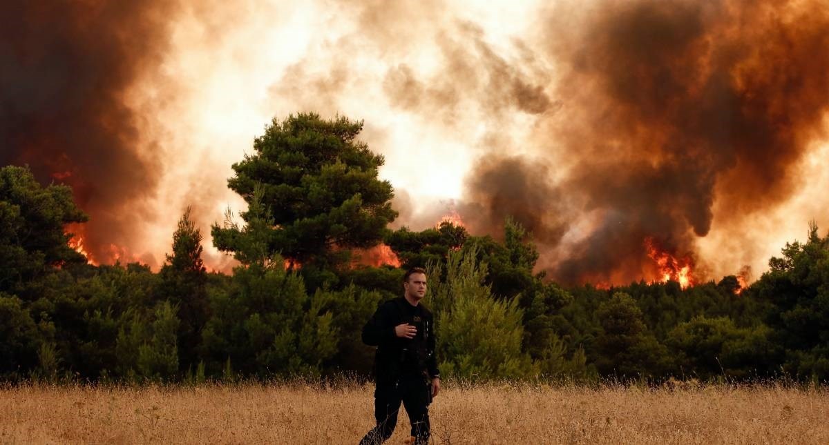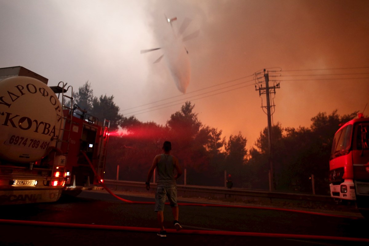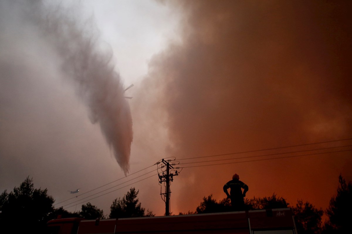 S područjima susjedne Turske koja su također u plamenovima, nebo ispunjeno dimom podsjetilo je na apokaliptične slike poplava i požara u Europi ovo ljeto.
