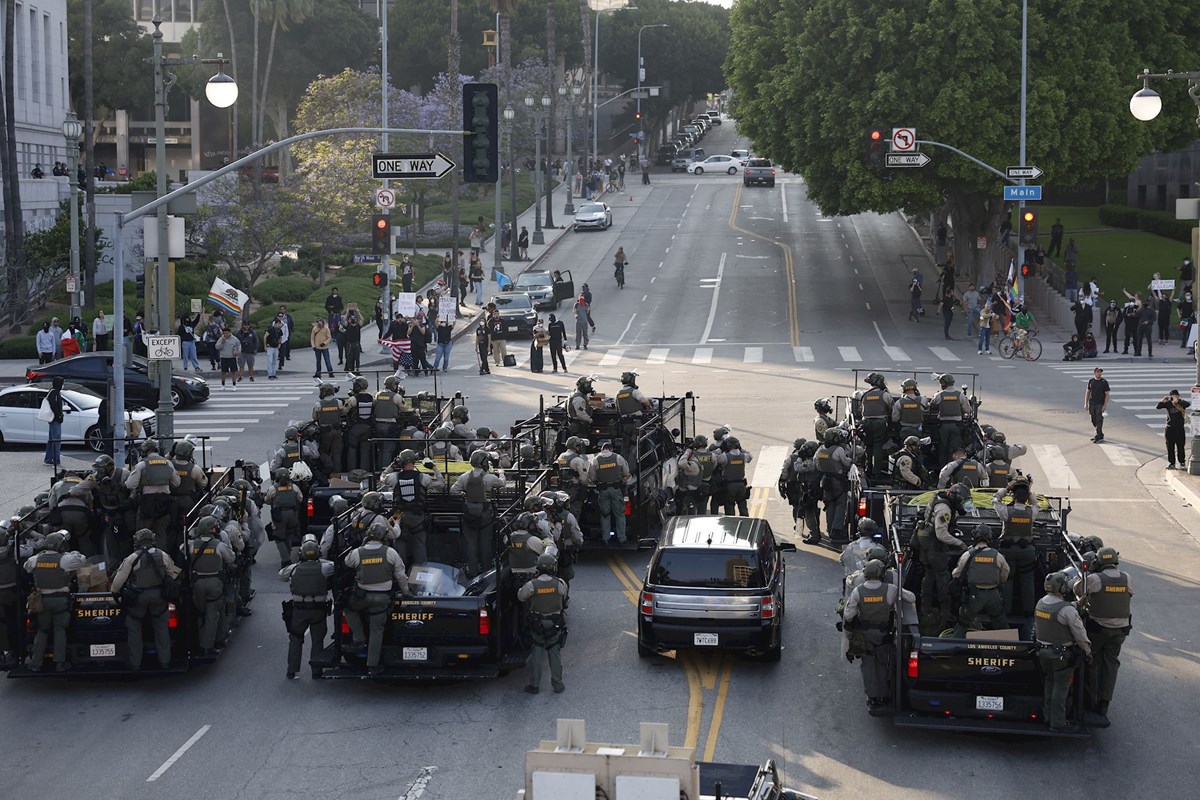 U ponedjeljak navečer, losanđeleska policija bacala je šok-granate i suzavac kako bi rastjerala stotine prosvjednika okupljenih ispred saveznog pritvorskog centra u središtu grada, gdje su smješteni migranti bez dokumenata. Pripadnici Nacionalne garde formirali su kordon i spriječili ulazak prosvjednika u zgradu.