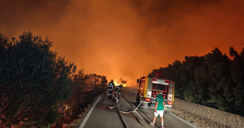 Zbog opasnosti je evakuiran jedan hotel i jedno kamp-naselje, no, prema njegovim riječima, svi objekti su obranjeni, a ozbiljnijih ozljeda nije bilo. Na terenu se trenutno nalazi 56 vatrogasaca i 22 vozila, a od jutra pomaže i kanader. Iako je požar stavljen pod kontrolu, bura i dalje stvara probleme, pa će vatrogasci ostati na terenu cijeli dan, a vjerojatno i tijekom noći, najavio je Martinović.