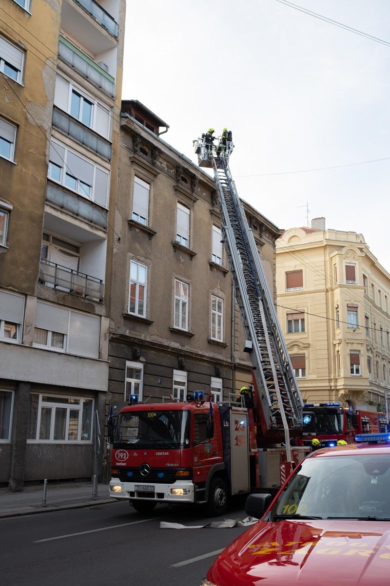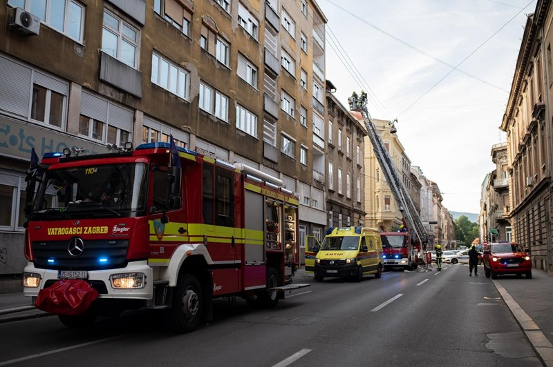 U jednom stanu zapalila se kuhinja, a na intervenciju su izašli vatrogasci JVP-a Zagreb sa šest vozila. Oni su pomoću visinskog vozila spašavali jednog čovjeka s balkona. Neslužbeno, u stanu žive strani dostavljači hrane i požar je uzrokovalo zapaljenje baterija.