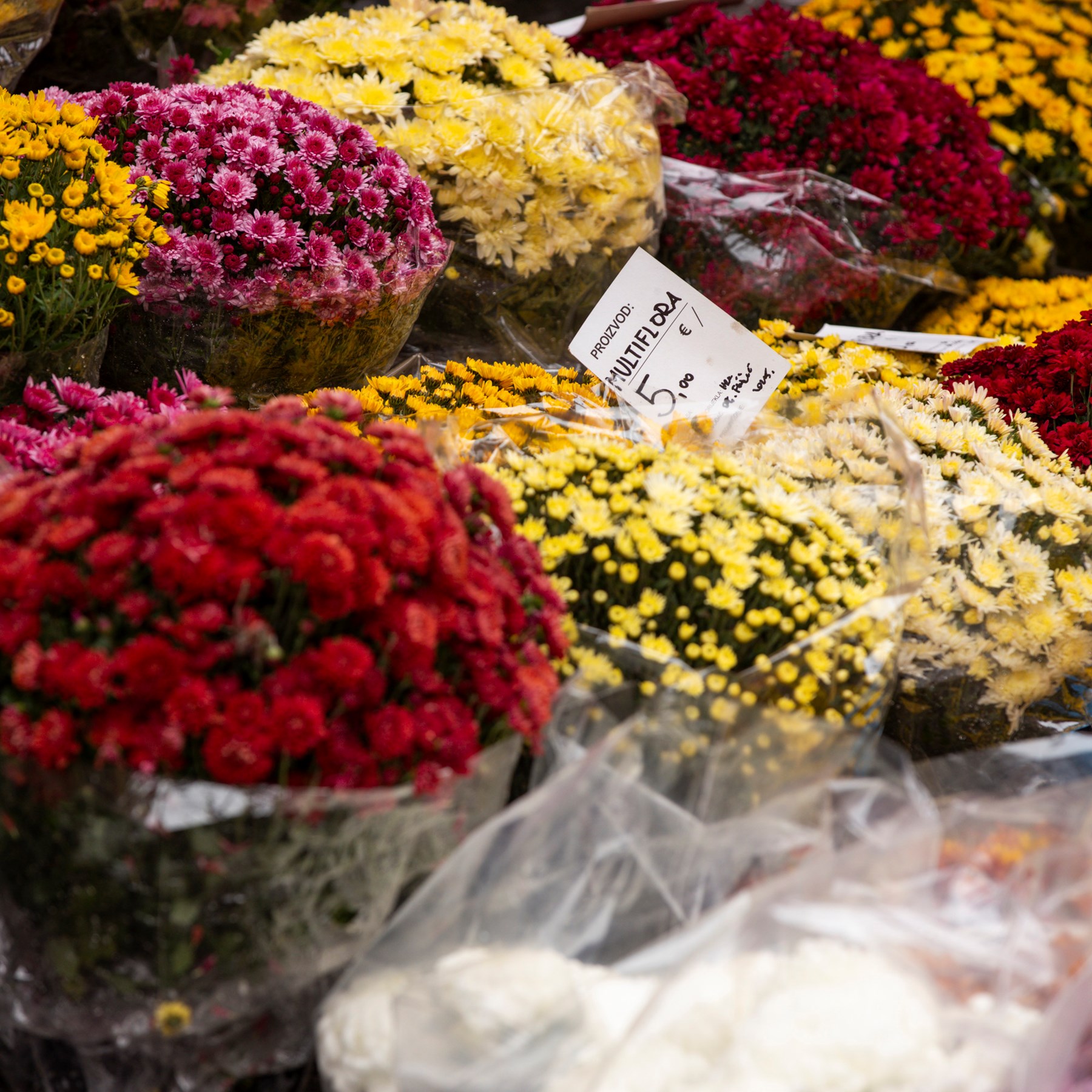 Na Britanskom trgu bila je najveća ponuda multiflora - cvijeća koje se uoči blagdana Svih svetih najviše prodaje. Cijene se kreću između 8 i 10 eura, a dostupne su u raznim bojama, od bijele i žute do crvene. Uz multiflore, mogle su se pronaći i ruže te tulipani.