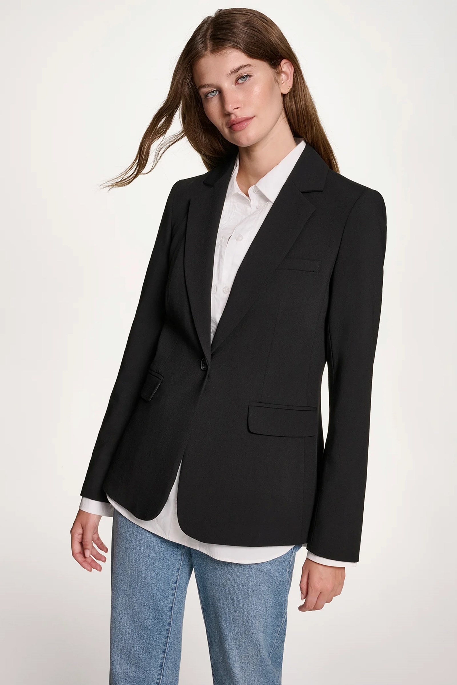 Za ovu suradnju Bieber nosi kombinacije koje spajaju klasične i modernije komade iz nove DKNY kolekcije. Jedan od lookova uključuje crni blejzer preko bijele košulje, uz robusne mokasine i traper - spoj koji stvara dotjeran, ali ležeran dojam, tipičan za autentičan njujorški street style.