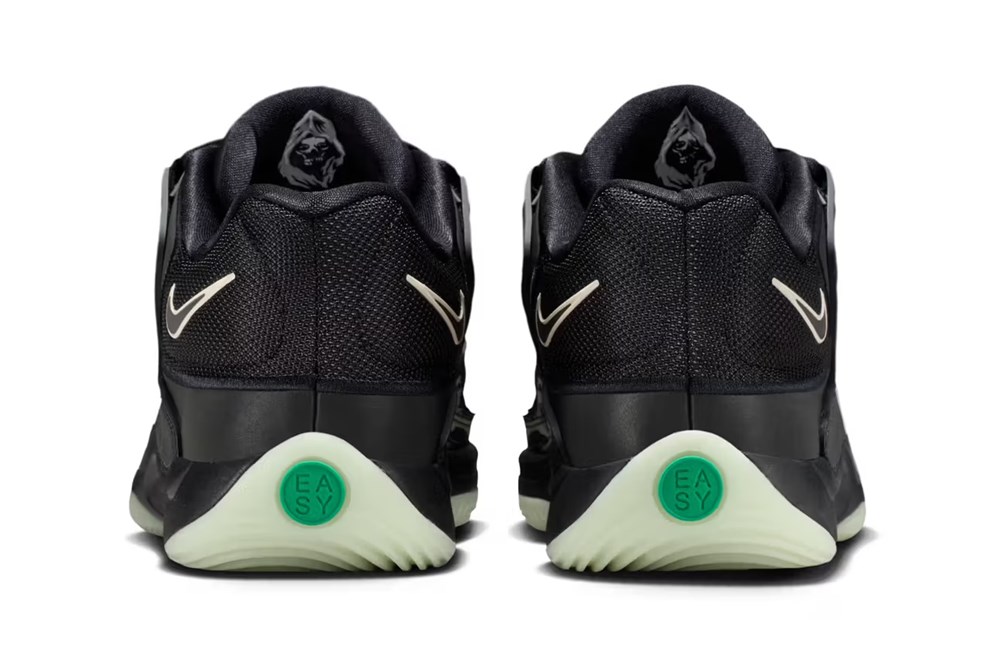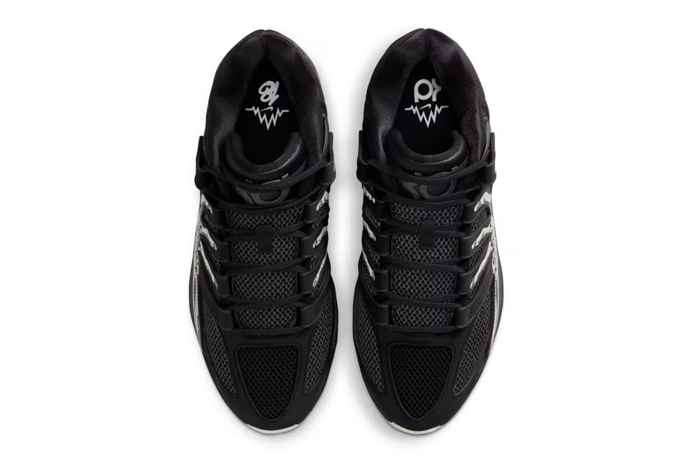 Ovaj jezivi vizual nadopunjen je potplatom koji svijetli u mraku, osiguravajući da se estetika ističe i pri slabom osvjetljenju. Dodatni detalj je grafika kostura (reapera) ispod jezika. Nikeov logotip Swoosh suptilno je ocrtan bijelom bojom, dok se KD-ov logo neprimjetno stapa s potpuno crnim jezikom.