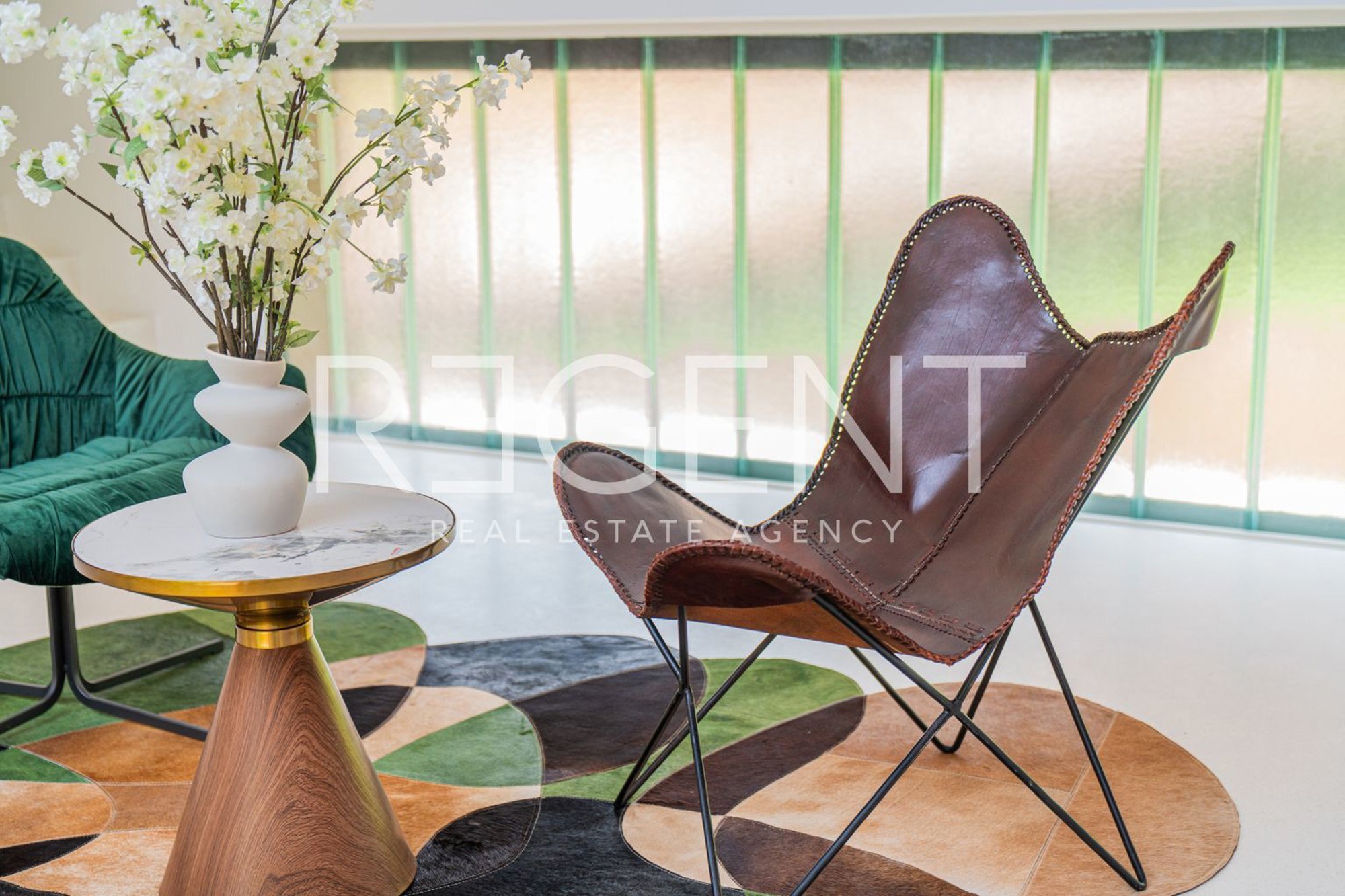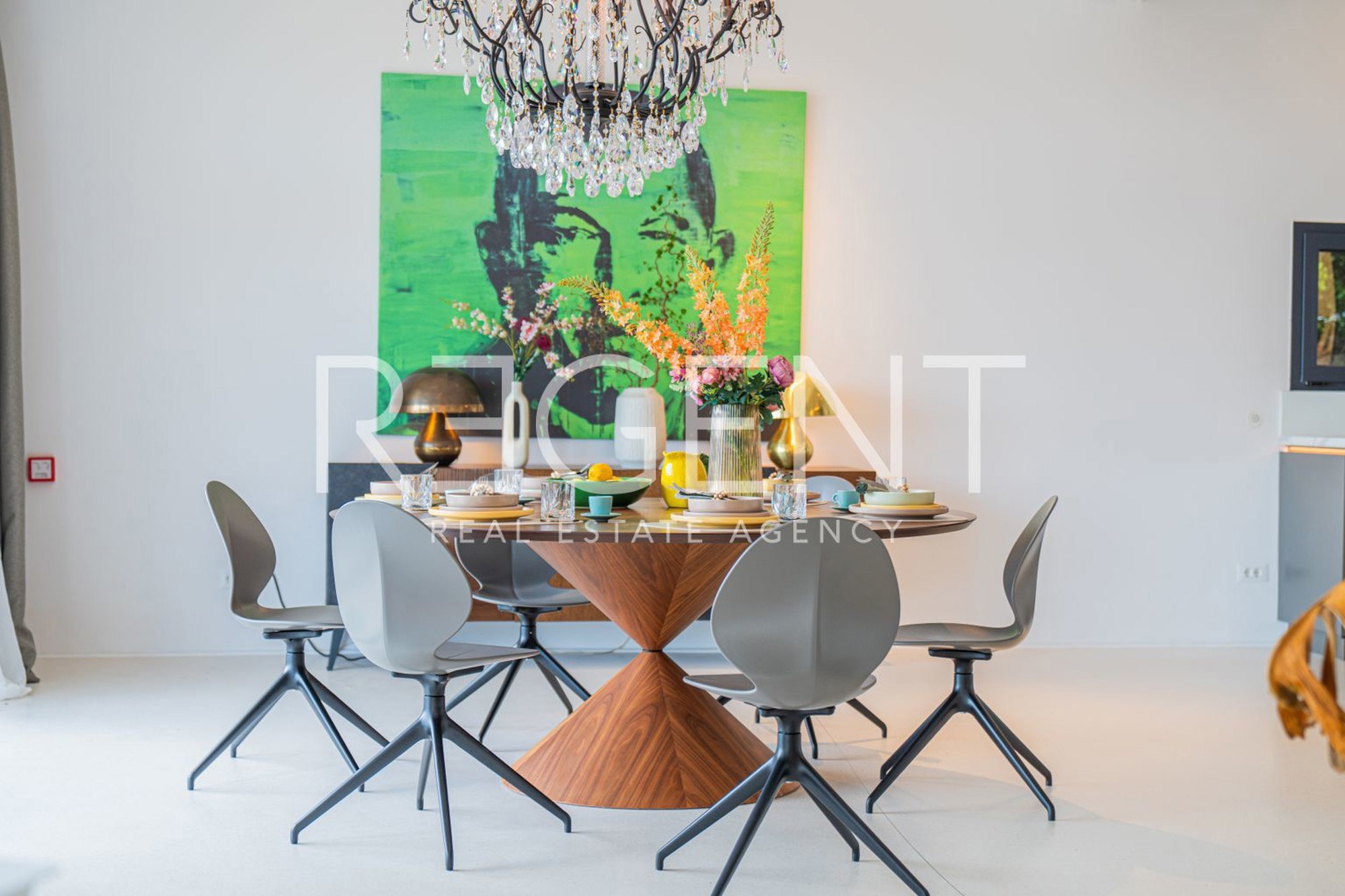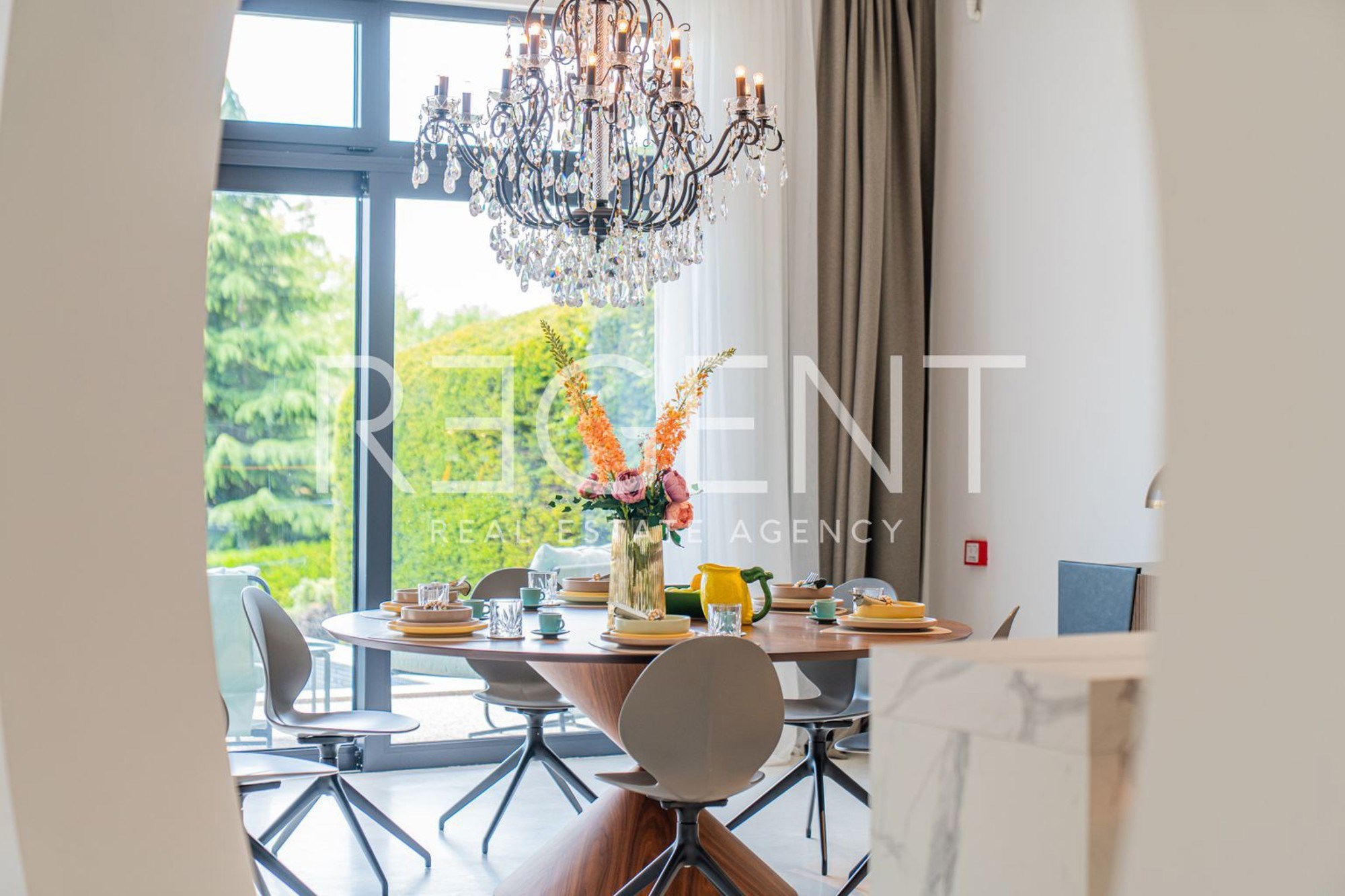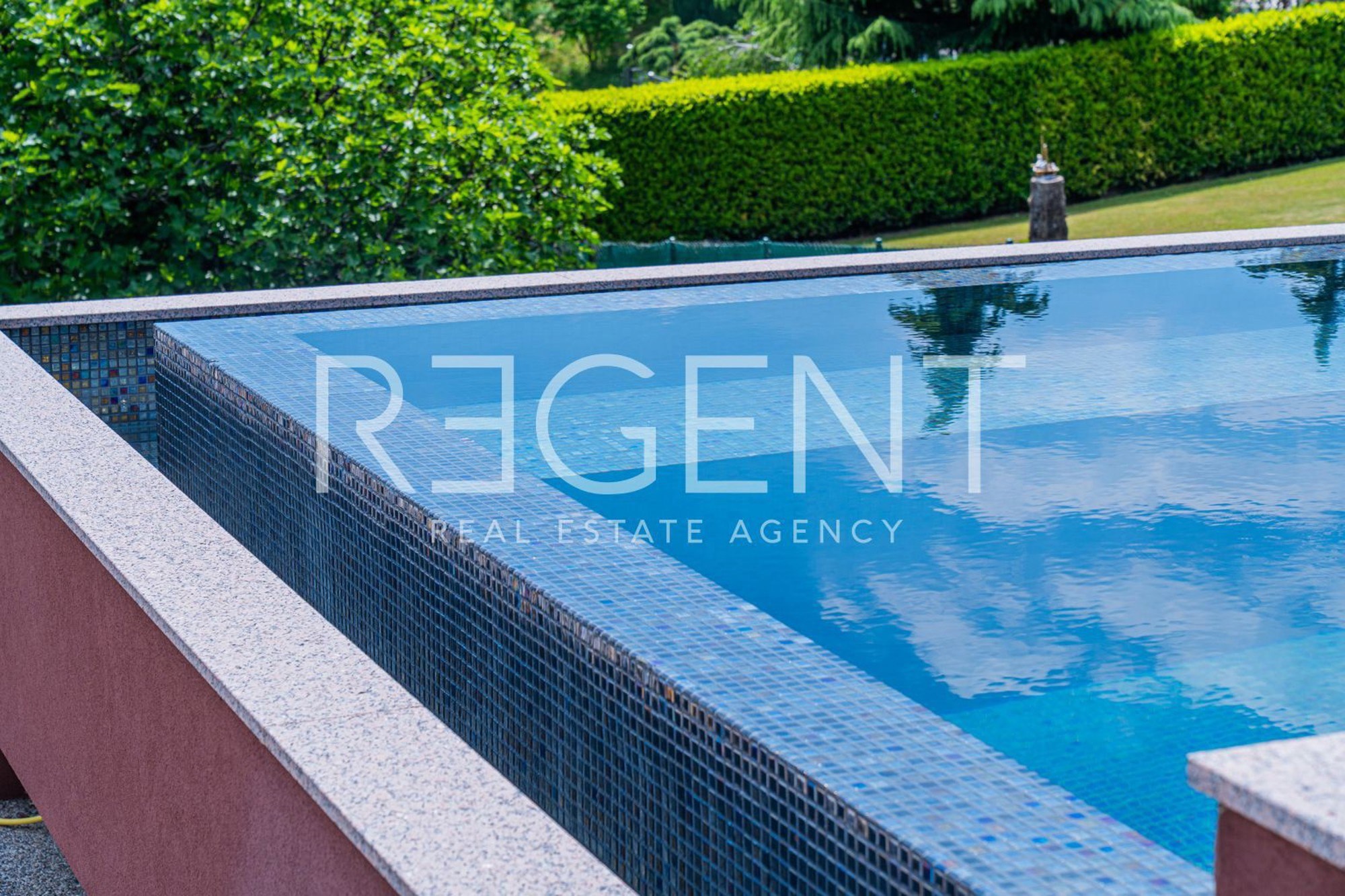 U oglasu je naglašeno da je kuća opremljena najsuvremenijim materijalima, uključujući visokokvalitetne podne obloge od terazza. Također, postoji i priprema za ugradnju solarnih panela. Kroz velike staklene stijene pruža se pogled na zelenilo i bazen, što doprinosi osjećaju prozračnosti i povezanosti s prirodom.