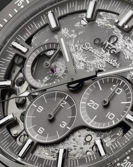 GODINE 2013. Omega je svijetu predstavila visokotehnološku interpretaciju svog čuvenog Speedmaster kronografa pod nazivom Dark Side of the Moon (DSOTM). U potpunosti izrađen od crne keramike i opremljen automatskim mehanizmom, ovaj je sat postao prekretnica koja je kolekcionarstvo satova iz uskog hobija pretvorila u mainstream fenomen. Odjednom se činilo da svi znaju što je Speedmaster, neovisno o tome jesu li se smatrali zaljubljenicima u satove, piše GQ.