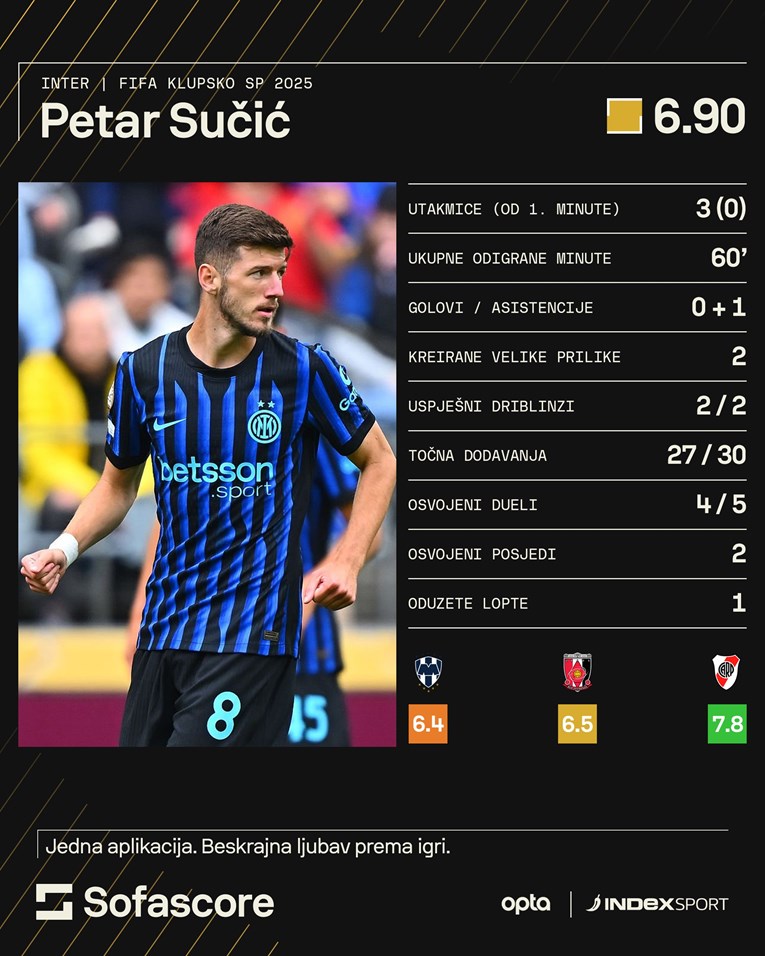 PETAR SUČIĆ (21) je početkom mjeseca prešao iz Dinama u Inter uz odštetu od 14 milijuna eura. Talijanski mediji slave ga iako je u prve tri utakmice za Inter ukupno igrao manje od sat vremena. Sva tri Sučićeva nastupa za novi klub bila su u skupini klupskog SP-a u Americi.