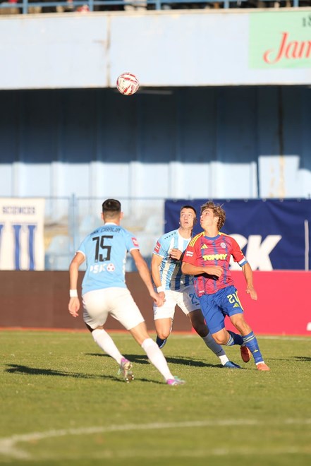 Marko Pervan prošao je kroz sredinu Hajdukove obrane, ali nije dobro pucao.s ruba šesnaesterca. Bila je ovo velika šansa za domaćine.